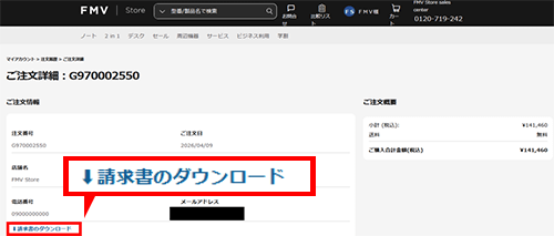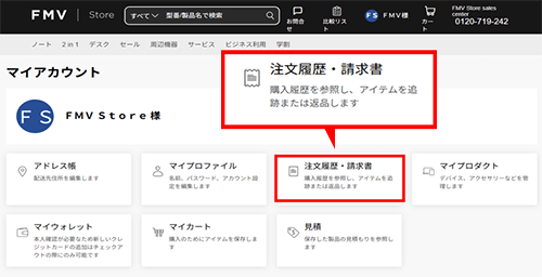 FMV members登録済みのお客様:マイアカウント[注文履歴・請求書]から発行が可能です。
