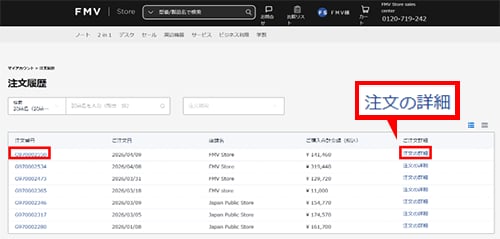 FMV members登録未登録のお客様:ご注文後に送信されるメールにあります[ご注文状況確認]のリンクより発行が可能です。