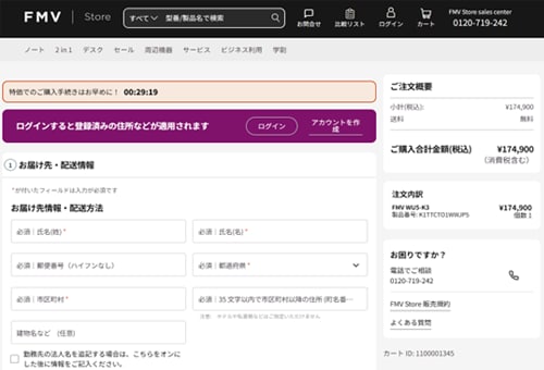 以下内容については、FMV Storeでログイン後、マイページにてご変更いただけます。