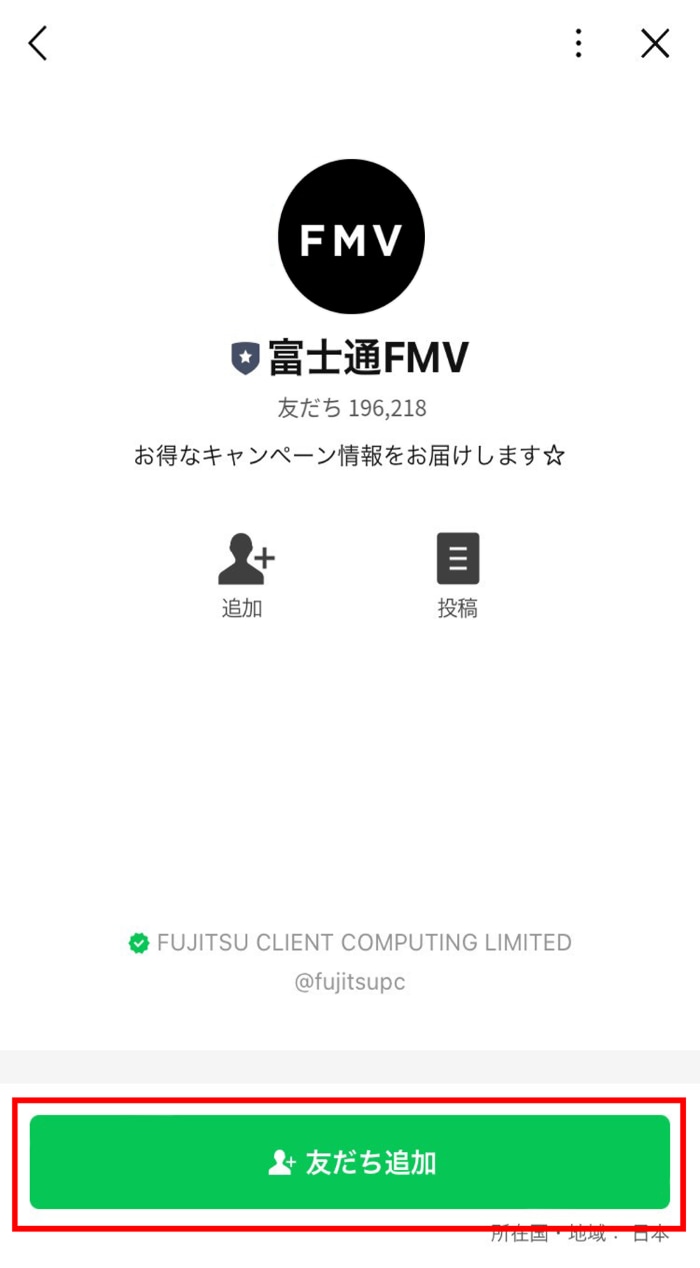 1LINEアプリから「富士通FMV」を友だち追加する