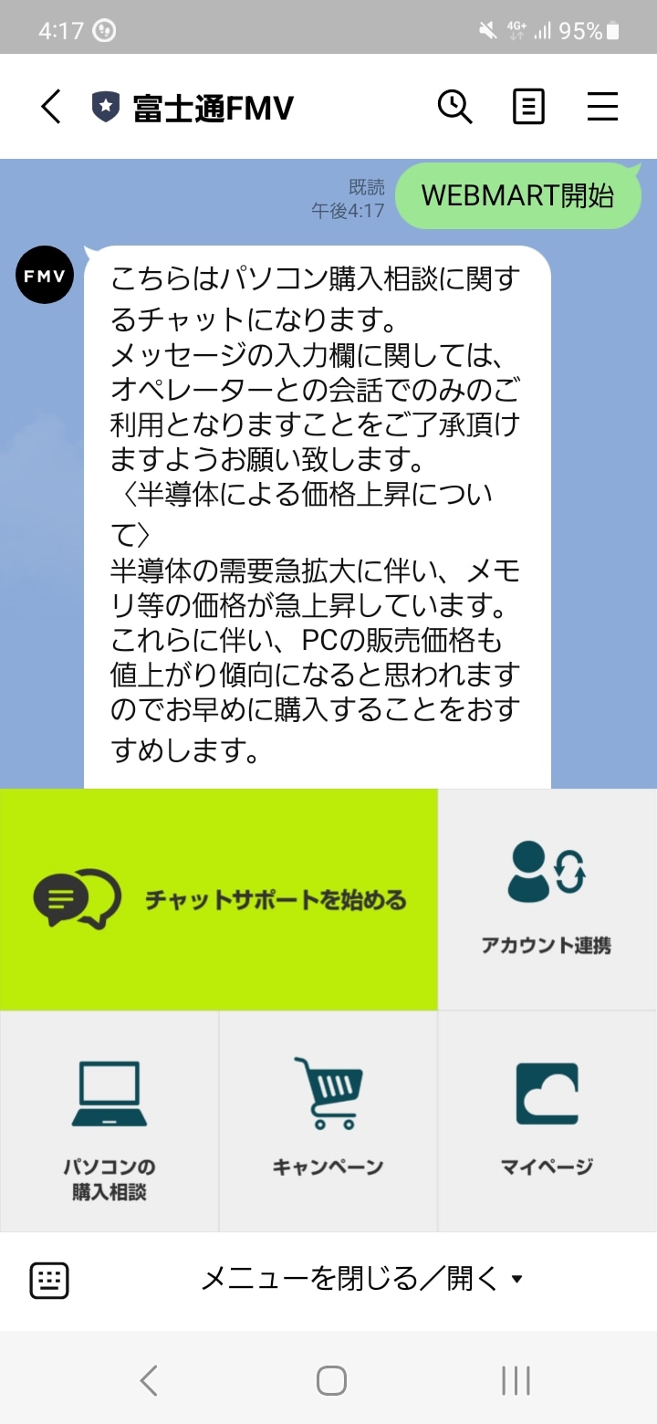 - パソコンでのLINE使用には対応していません。パソコンからチャットサポートを利用する場合は、Webチャットをご利用ください。