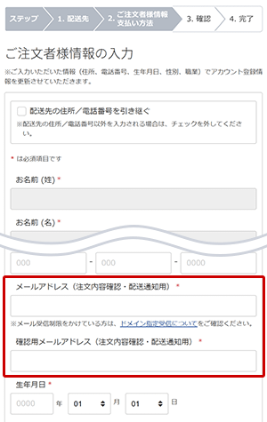 メール通知サービスをご利用いただくには、ご購入手続き時にご注文者様情報をご入力いただく際、メールアドレスを必ずご入力ください。