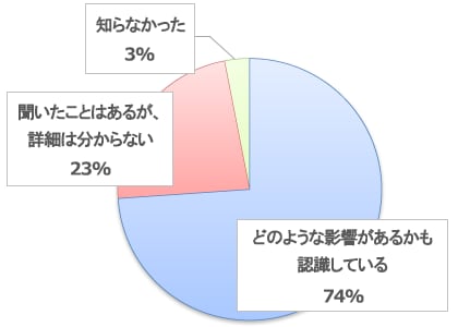 「どのような影響があるか知っている」と、「聞いたことはある」を合わせると、全体の97%の方が、サポート終了についてご存知という結果となりました。
