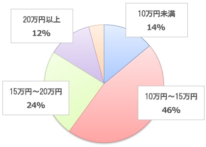 半数程度の方が、10万円以上~15万円未満でご検討されているようです。