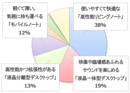 買い替えを検討されている方の4割程度の方が、ホームノートパソコン、3割程度の方がデスクトップパソコンを購入したいと思われているようです。