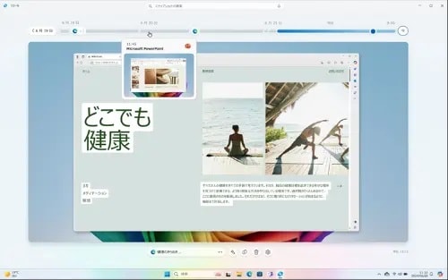 先輩:「そうだろ?でも、Copilot+ PCの良さって、仕事だけじゃないんだよ。プライベートでもかなり使えるんだ。たとえば『前にネットで見た話題の旅行スポット、どこだっけ?』なんて時もすぐ見つかる。あと、FMVなら『Reclip(リクリップ)』っていう便利な独自アプリも入ってるぞ」