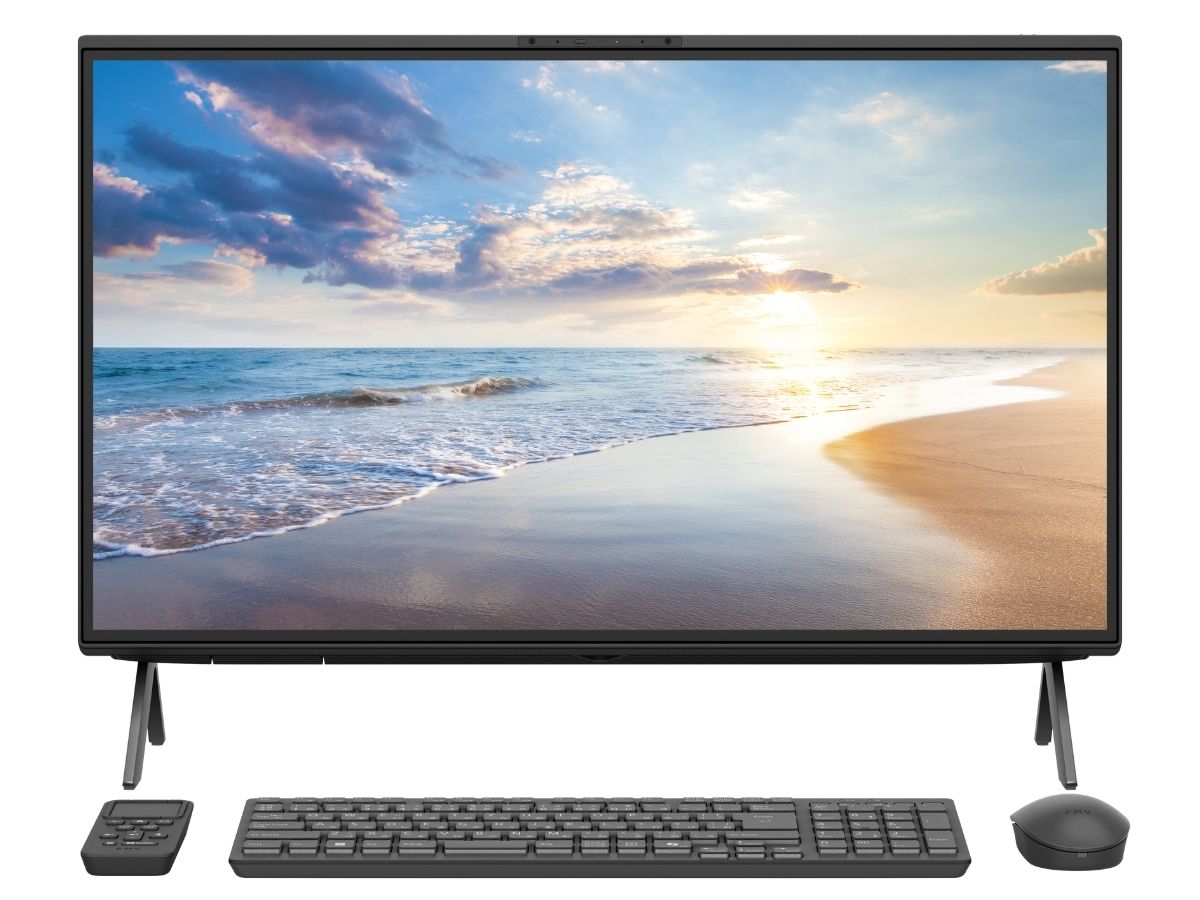 「FMV Desktop F」は、FMVの大画面オールインワン型デスクトップPC。複数のウィンドウを開いてもストレスがない27型と、大画面のメリットと省スペースを両立させた23.8型をラインアップしました。光の反射を抑えた見やすい高鮮度低反射液晶や2+2chサラウンドで、写真や動画鑑賞も快適。静音タイプのマウスとキーボードにより、Web会議中や共有スペースでの作業中もノイズが発生しにくい設計です。